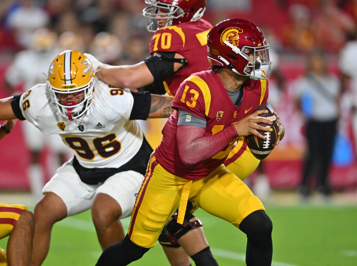 Head coach Kenny Dillingham talked after practice about ASU’s upcoming matchup against USC and Dillingham talked about about his team can contain USC’s star quarterback Caleb Williams.